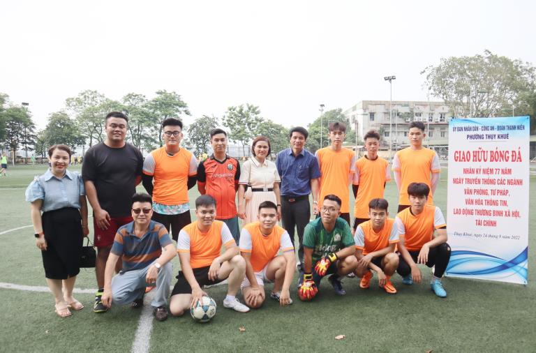Chiều ngày 24/8/2022, tại sân bóng Chu Văn An đã diễn ra trận giao hữu bóng đá giữa UBND - Công an - Đoàn thanh niên phường Thụy Khuê nhân kỷ niệm 77 năm ngày truyền thống các ngành văn phòng, tư pháp, văn hóa thông tin, lao động thương binh xã hội, tài chính (28/8/1945 – 28/8/2022)